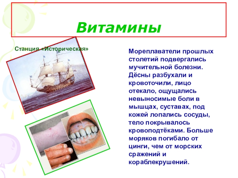 Мореплаватели прошлых столетий подвергались мучительной болезни. Дёсны разбухали и кровоточили,
