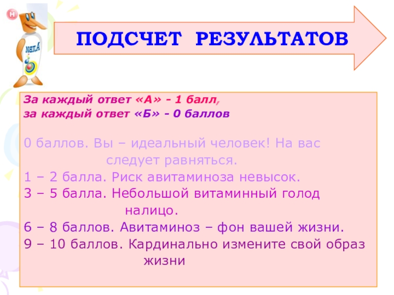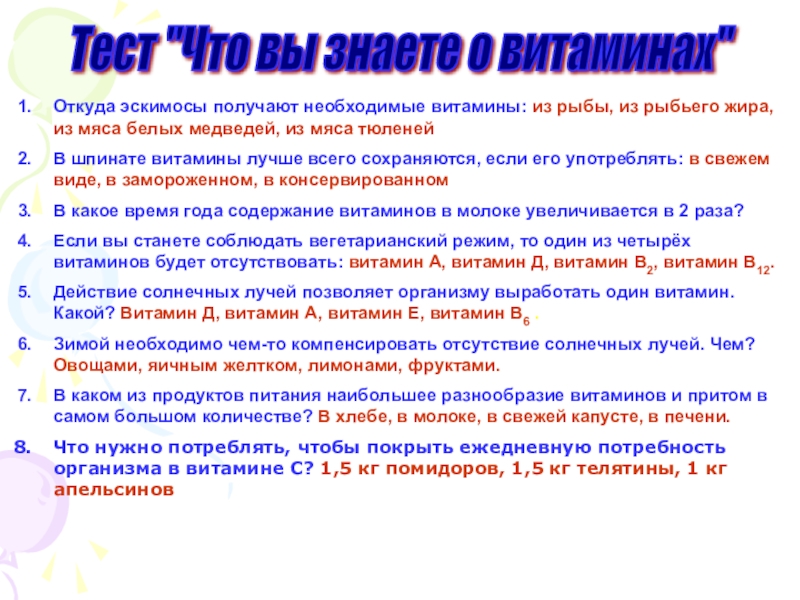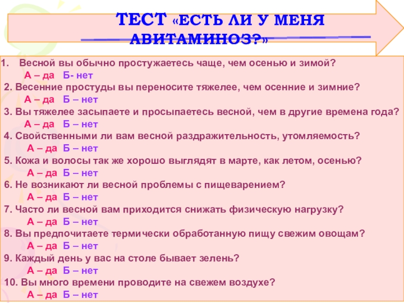 Слайд 42 ТЕСТ «ЕСТЬ ЛИ У МЕНЯ АВИТАМИНОЗ?»