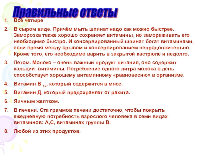 Дать характеристику продуктов питания по присутствию в них витаминов