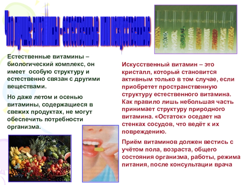 Слайд 35Что лучше: витамины - естественные или искусственные