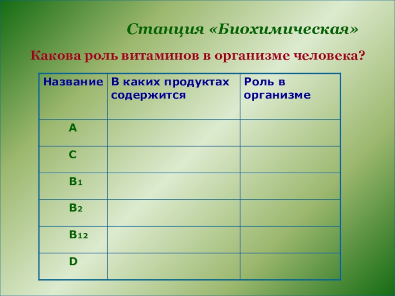 Позволить учащимся определить присутствует ли у них витаминная недостаточность