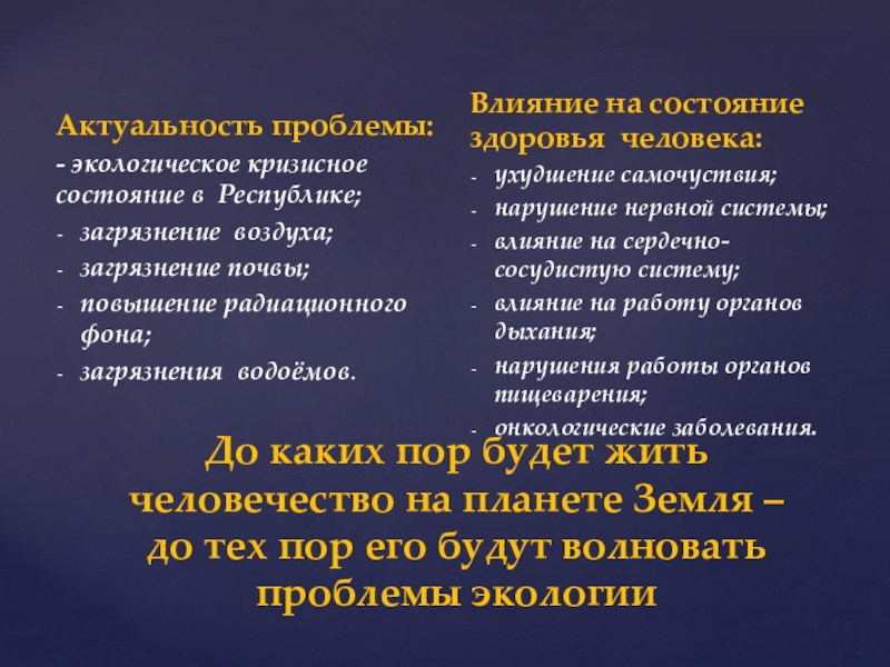 - экологическое кризисное состояние в Республике;