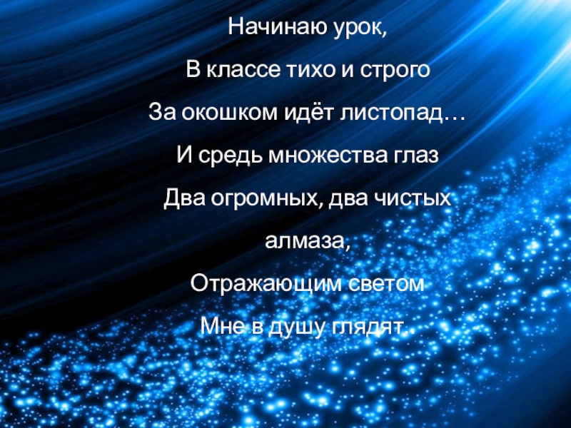 Начинаю урок,  В классе тихо и строго За окошком идёт листопад… И средь множества глаз Два