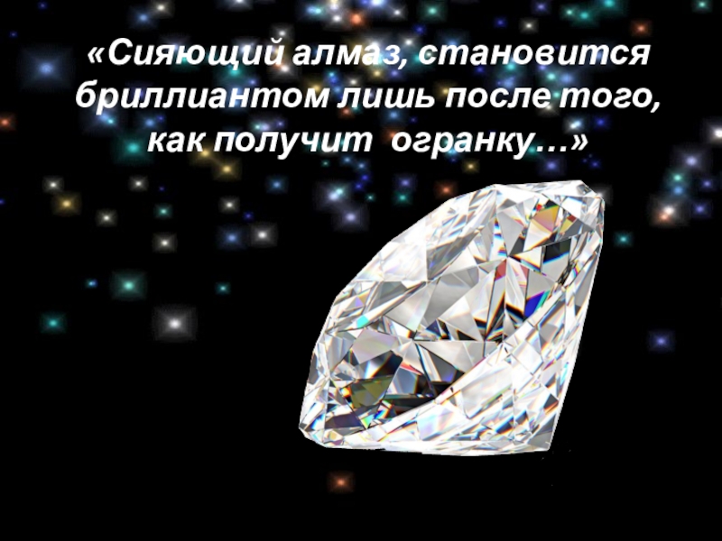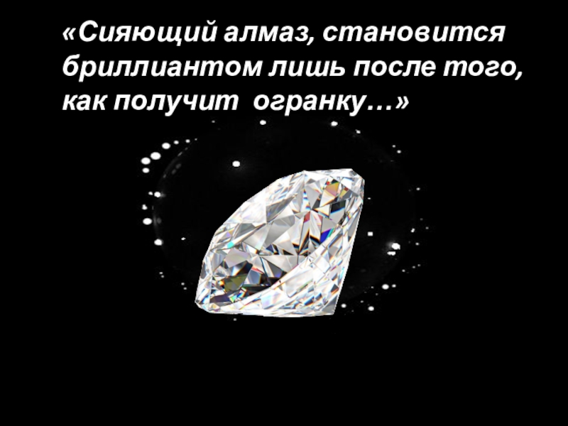 Слайд 10«Сияющий алмаз, становится бриллиантом лишь после того, как получит огранку…»