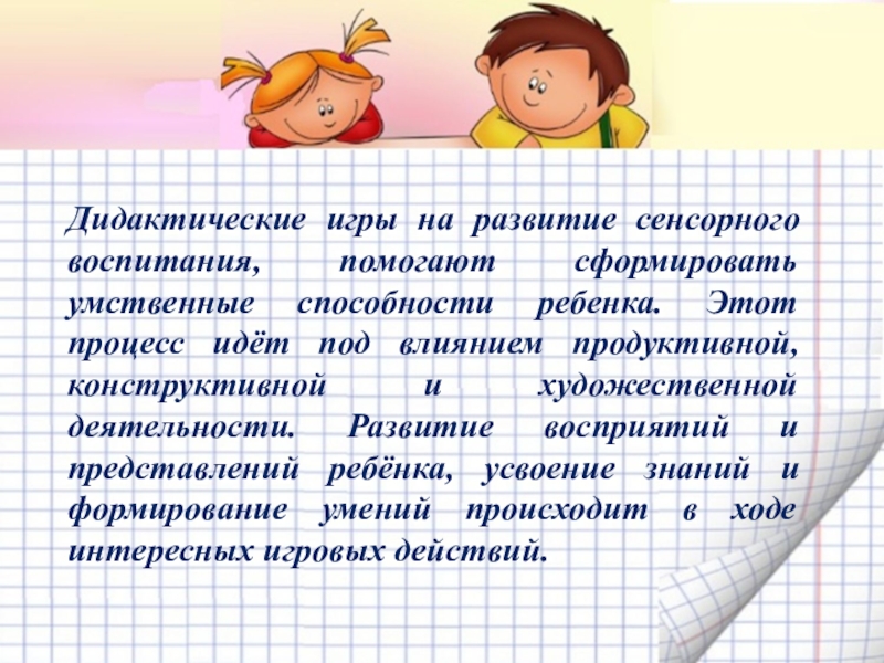 Слайд 7Дидактические игры на развитие сенсорного воспитания, помогают сформировать умственные способности ребенка.