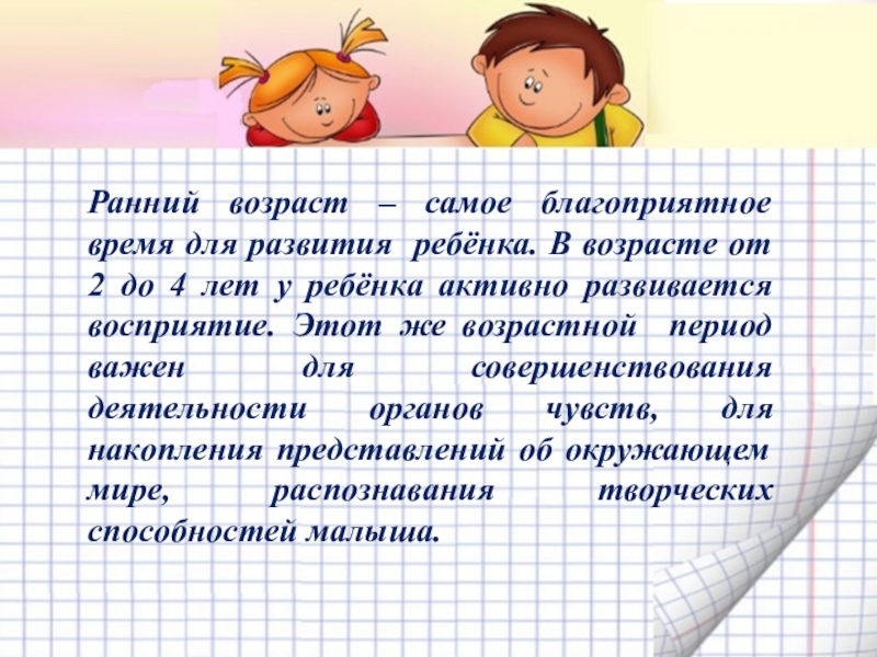 Слайд 3Ранний возраст – самое благоприятное время для развития ребёнка. В возрасте