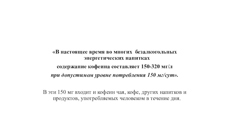 В эти 150 мг входит и кофеин чая, кофе, других напитков и продуктов, употребляемых человеком в течение дня.