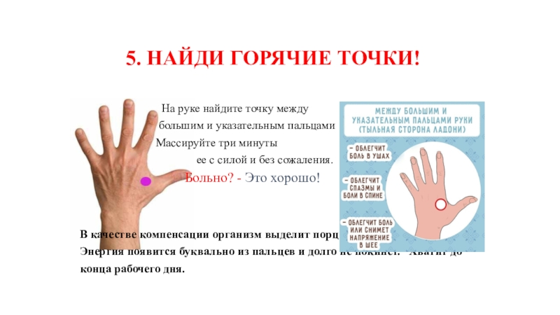 На руке найдите точку между