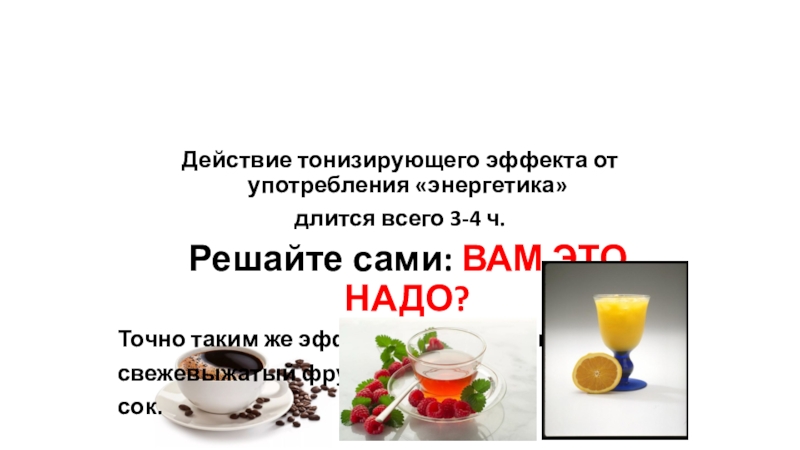 Слайд 7Действие тонизирующего эффекта от употребления «энергетика»