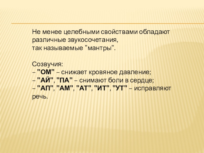 Слайд 17Не менее целебными свойствами обладают различные звукосочетания,