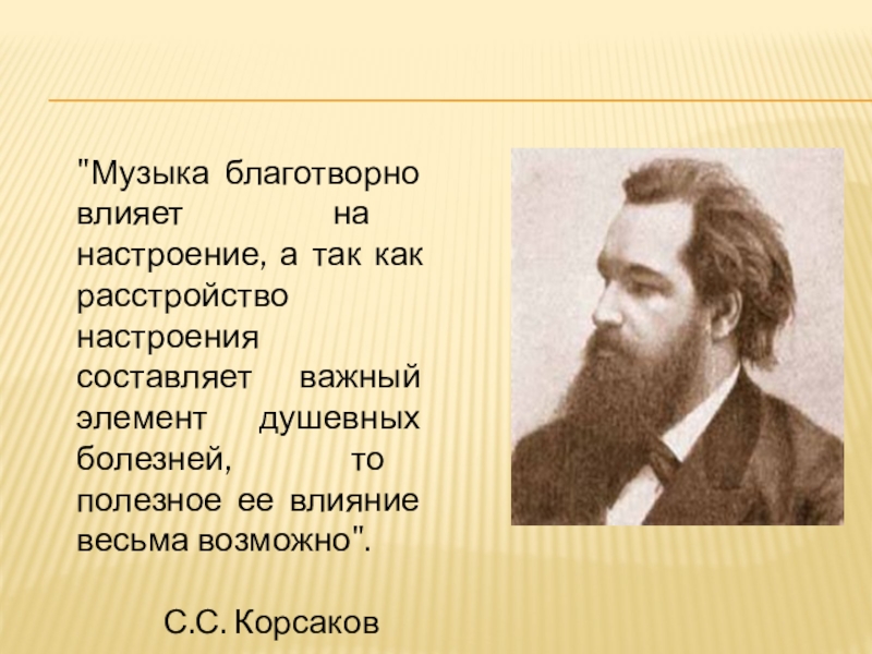 Слайд 14"Музыка благотворно влияет на настроение, а так как расстройство настроения составляет