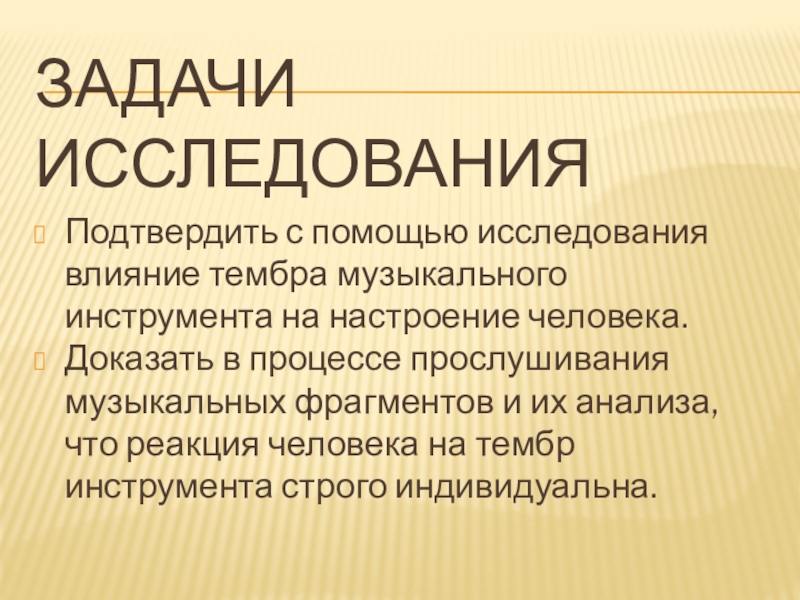 Подтвердить с помощью исследования влияние тембра музыкального инструмента на настроение
