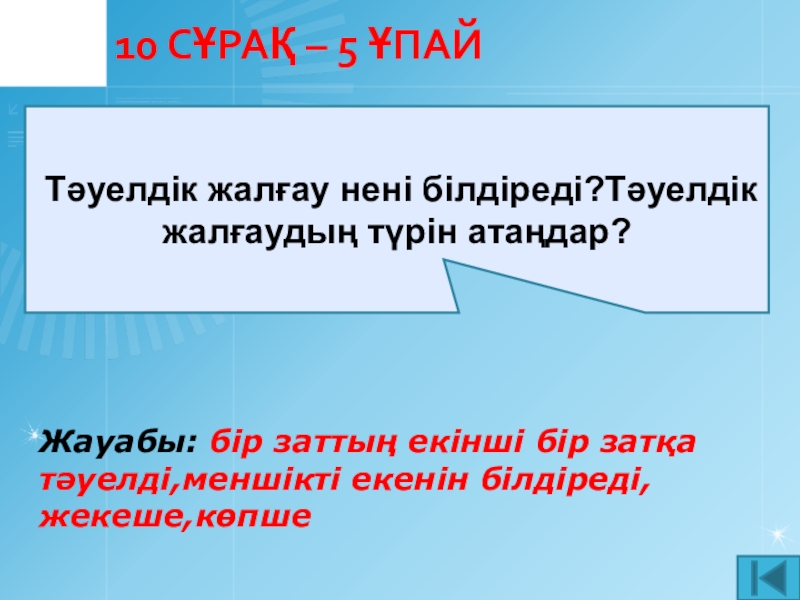 Жауабы: бір заттың екінші бір затқа тәуелді,меншікті екенін білдіреді,жекеше,көпше
