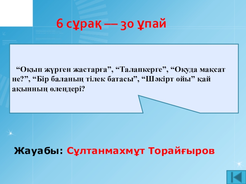 “Оқып жүрген жастарға”, “Талапкерге”, “Оқуда мақсат не?”, “Бір баланың тілек батасы”, “Шәкірт ойы” қай ақынның өлеңдері?
