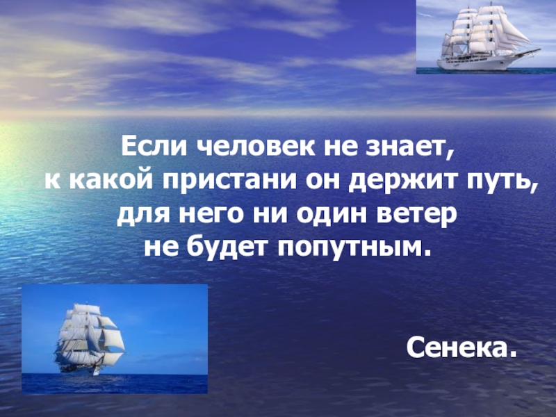 Слайд 10Если человек не знает, к какой пристани он держит путь, для