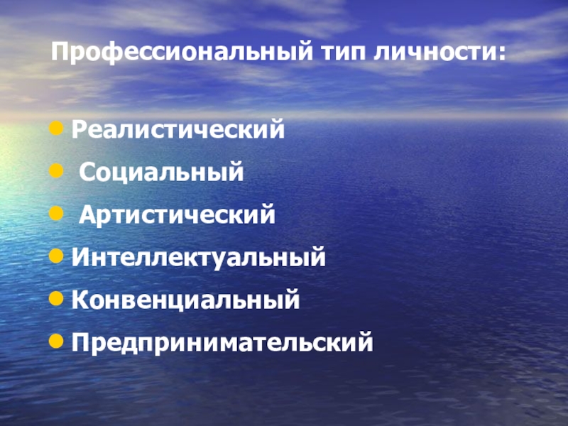 Слайд 9Профессиональный тип личности: