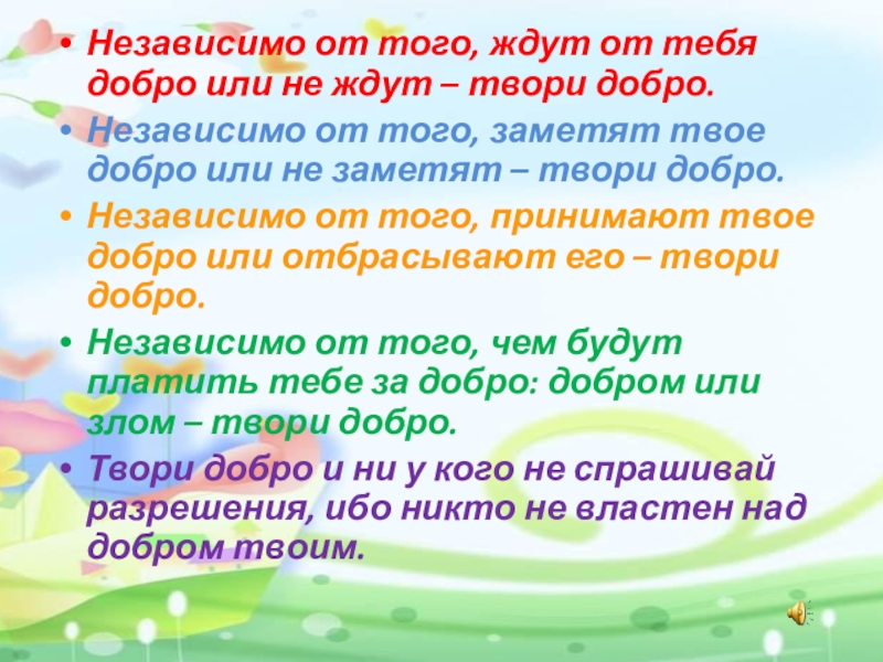 Слайд 10Независимо от того, ждут от тебя добро или не ждут –