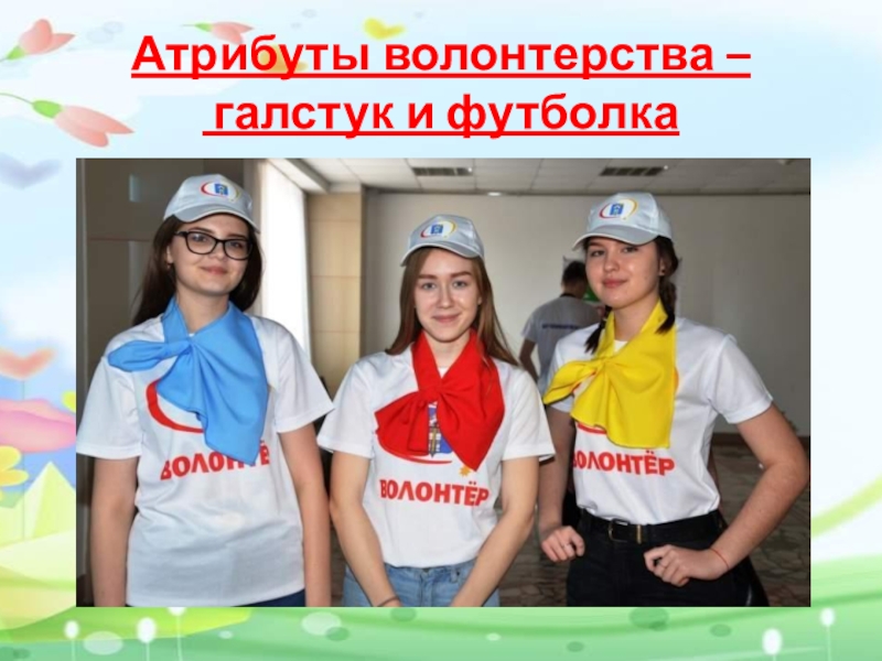 Слайд 8Атрибуты волонтерства – галстук и футболка