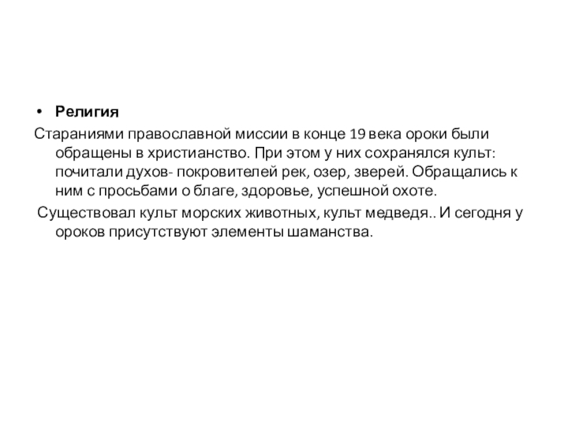 Существовал культ морских животных, культ медведя.. И сегодня у ороков присутствуют элементы шаманства.