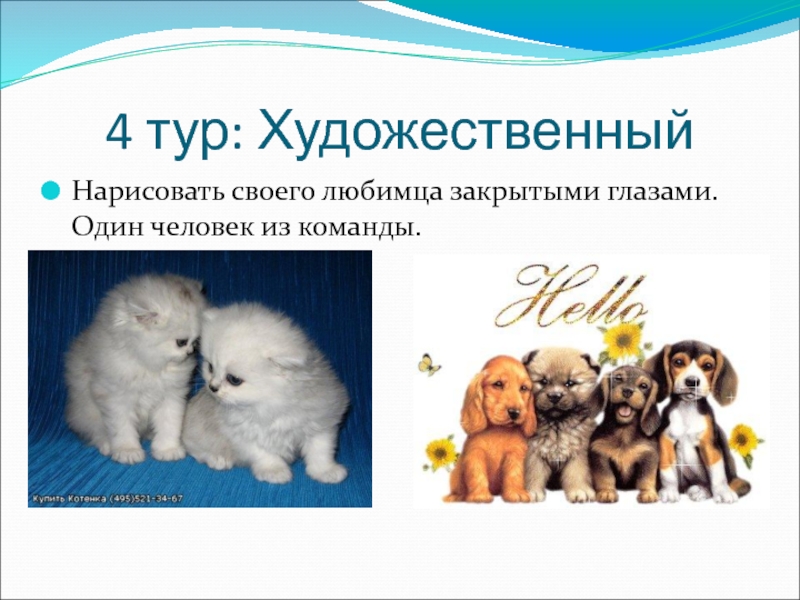 4 тур: ХудожественныйНарисовать своего любимца закрытыми глазами. Один человек из команды.