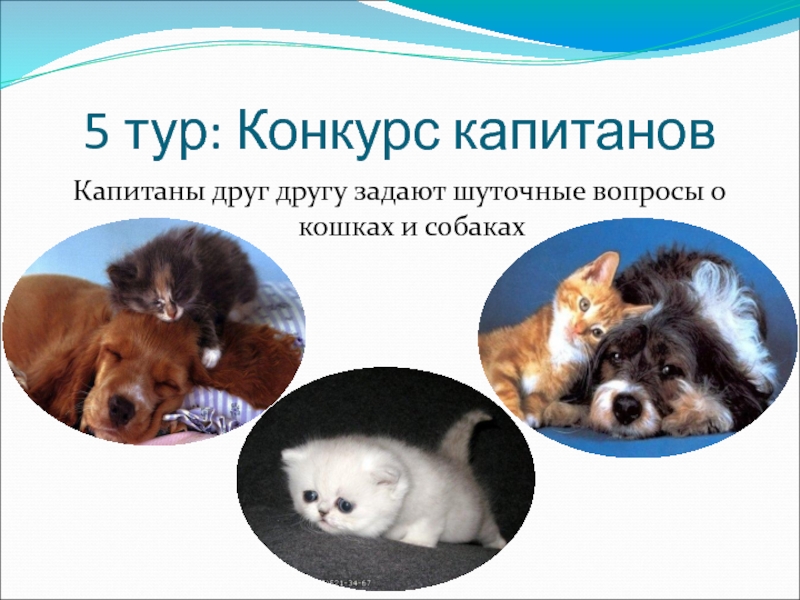 5 тур: Конкурс капитановКапитаны друг другу задают шуточные вопросы о кошках и собаках