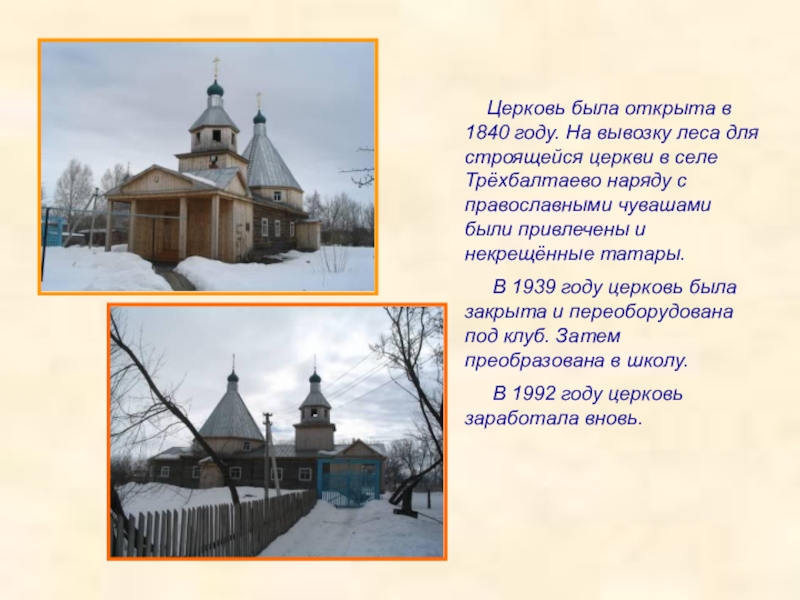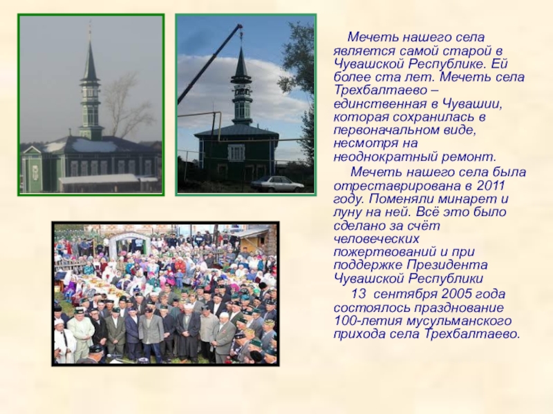 Об истории происхождения нашего села очень много преданий. Вот одна из них:и село Трехбалтаево, и дер. Чепкас-Ильметево основаны переселенцами из деревни Убей на Буле. «Лет триста назад,—Записано в 1969 году в селе Трехбалтаево,—у большого озера была деревня Убей. Там жил один богатей, Убеев, говорят. Убеев был очень злым человеком, кто выступал против него, того по его указанию тотчас связывали и избивали. И сыновья его, Палтай и Ильмет, были злыми. Однажды приглашает их отец и говорит: «Вы теперь выросли, можете убраться, куда глаза глядят». Дает им по гнедому коню. Оба сына, садятся на коней и едут в глубь леса верст на пятнадцать. Оба, соперничая, начали присваивать себе землю. Как Палтай доехал до речки Чапкас, его конь повредил ногу. Поэтому Ильмет захватил земли много, а Палтай — поменьше». На этих землях возникли два указанных селения.