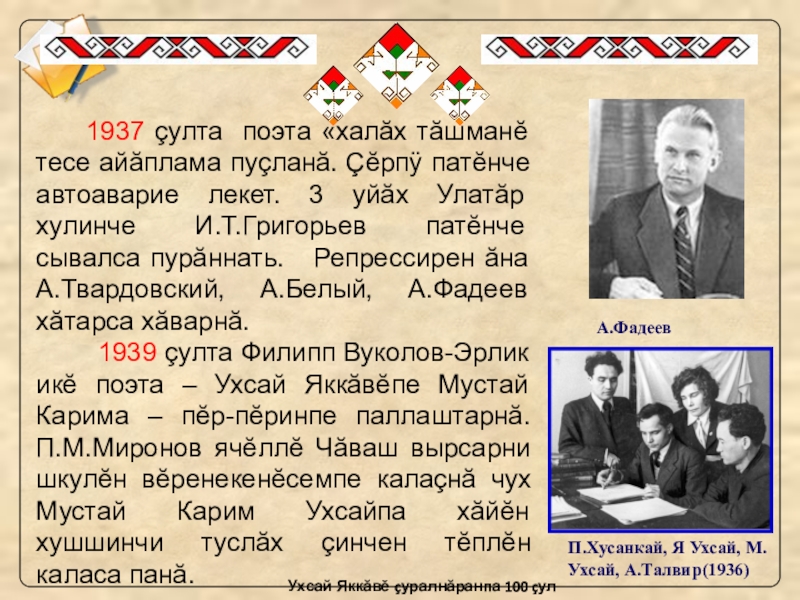 Ухсай Яккăвĕ çуралнăранпа 100 çул