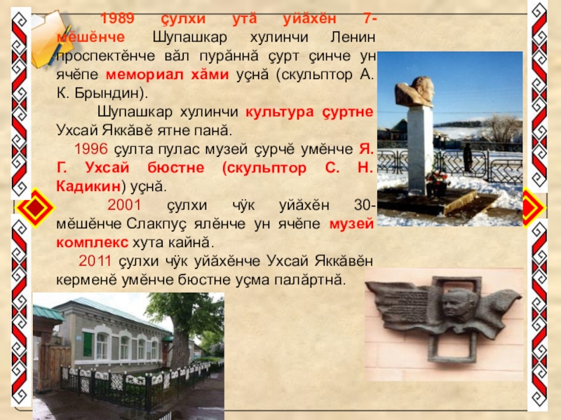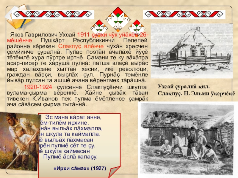 Ухсай çуралнă кил. Слакпуç. Н. Эльми ÿкерчěкě