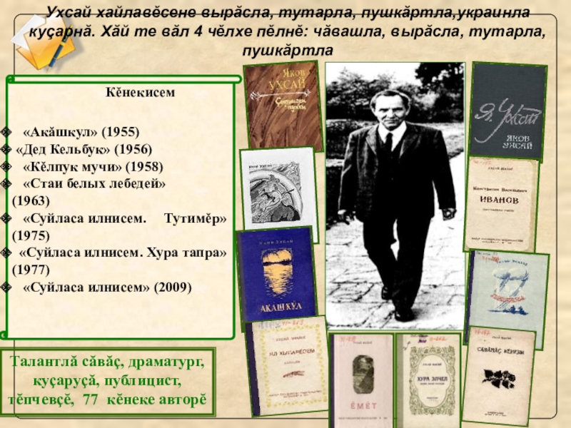 Талантлă сăвăç, драматург, куçаруçă, публицист, тĕпчевçĕ, 77 кĕнеке авторĕ