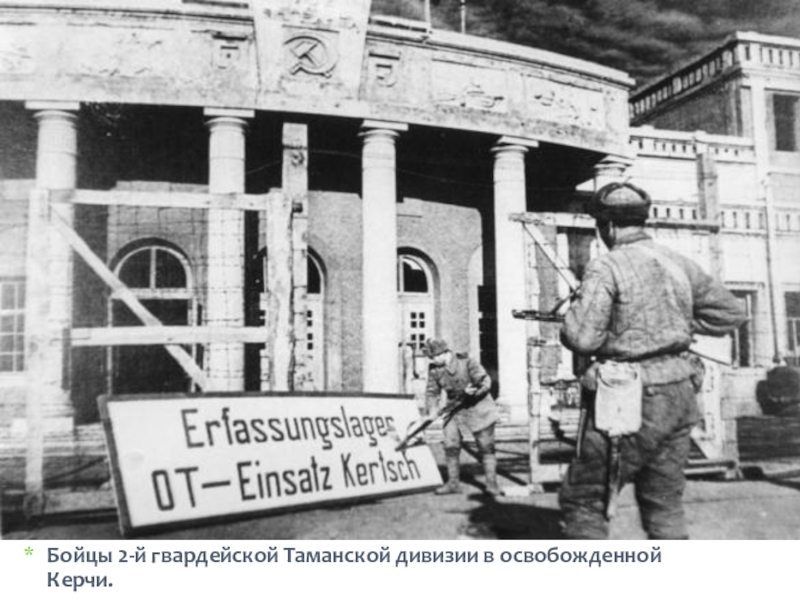 Слайд 21Бойцы 2-й гвардейской Таманской дивизии в освобожденной Керчи.