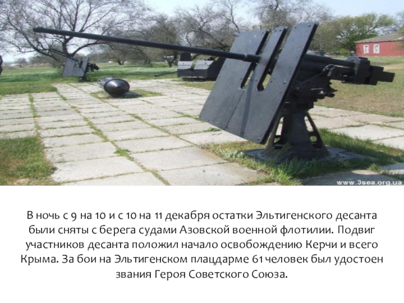 декабря остатки Эльтигенского десанта были сняты с берега судами Азовской военной флотилии. Подвиг участников десанта положил начало освобождению Керчи и всего Крыма. За бои на Эльтигенском плацдарме 61 человек был удостоен звания Героя Советского Союза.