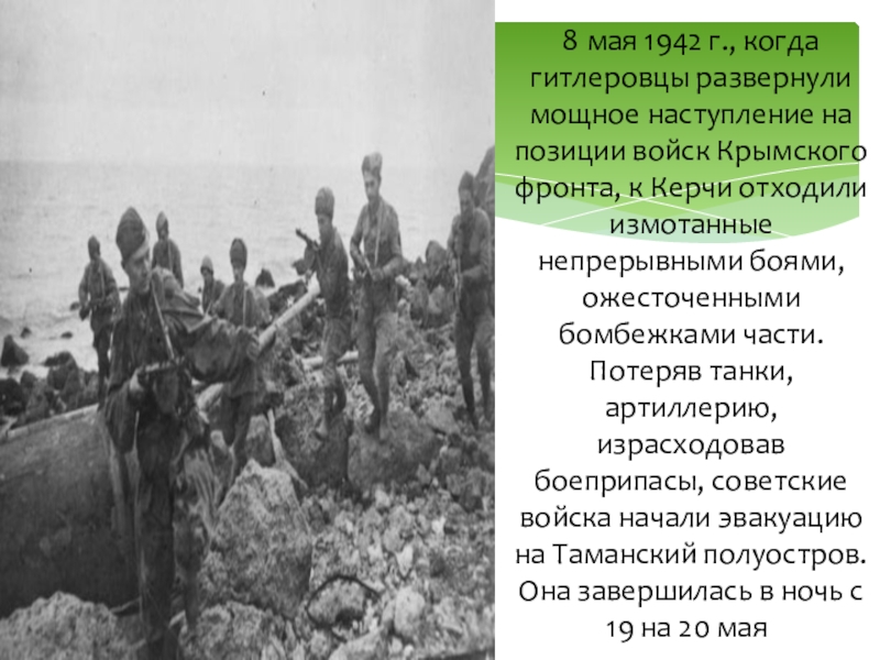 Слайд 78 мая 1942 г., когда гитлеровцы развернули мощное наступление на позиции