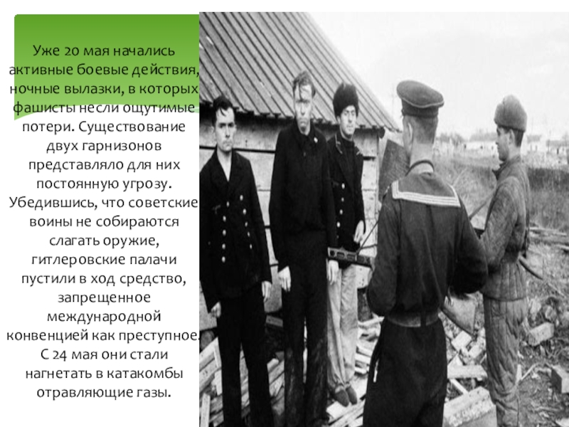 Слайд 9Уже 20 мая начались активные боевые действия, ночные вылазки, в которых