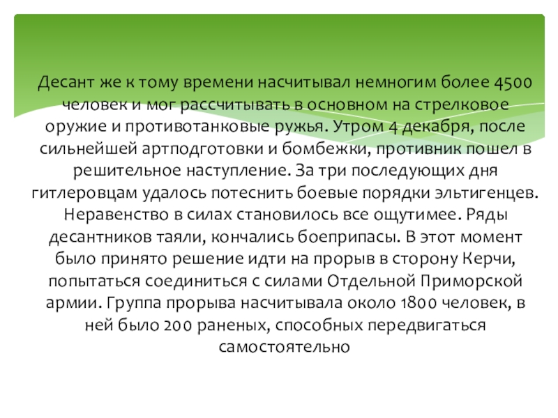 Слайд 17Десант же к тому времени насчитывал немногим более 4500 человек и