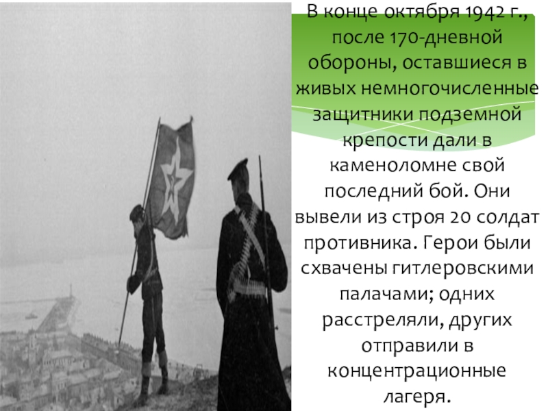 Слайд 12В конце октября 1942 г., после 170-дневной обороны, оставшиеся в живых