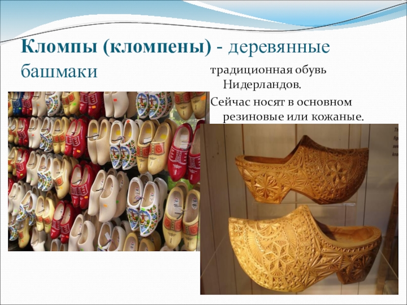 Слайд 48Кломпы (кломпены) - деревянные башмаки