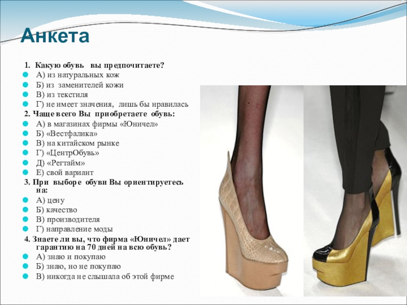 4. Знаете ли вы, что фирма «Юничел» дает гарантию на 70 дней на всю обувь?