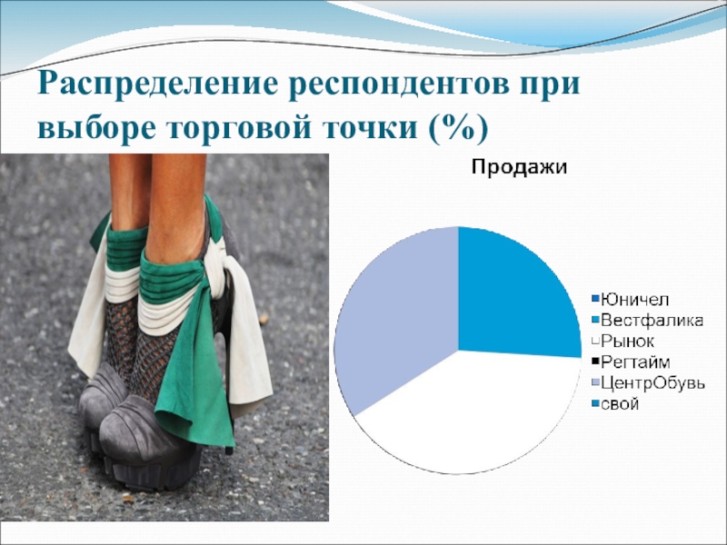 Слайд 71Распределение респондентов при выборе торговой точки (%)