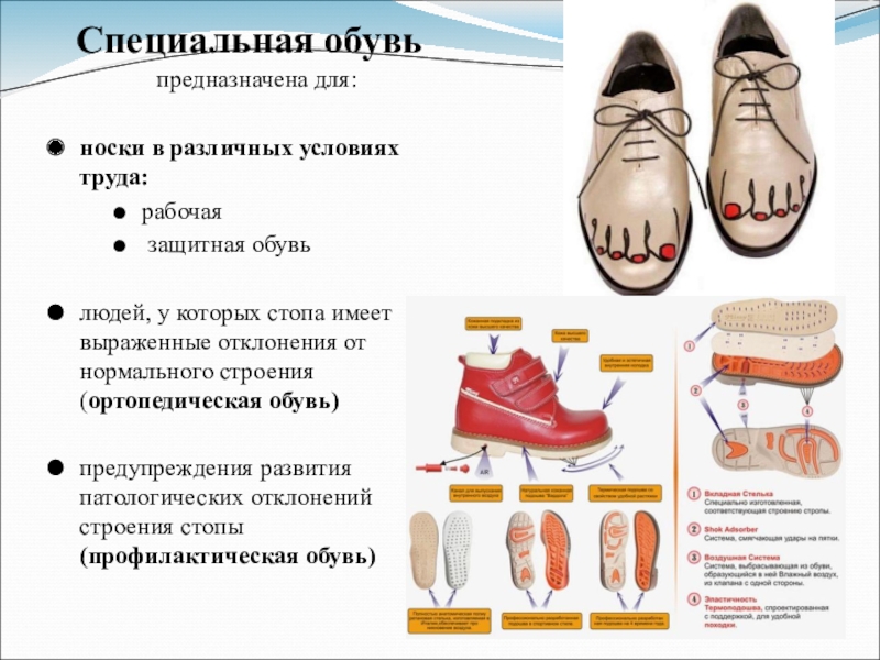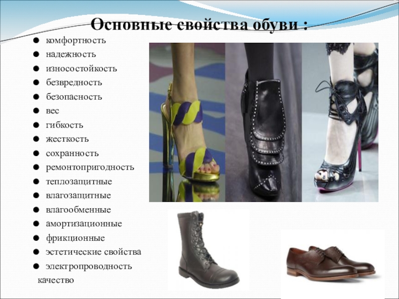 Слайд 7Основные свойства обуви :