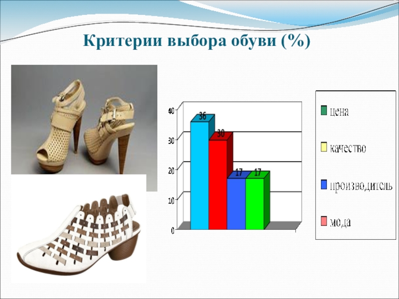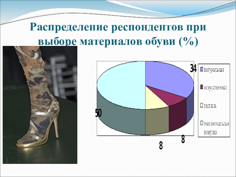 Слайд 70Распределение респондентов при выборе материалов обуви (%)