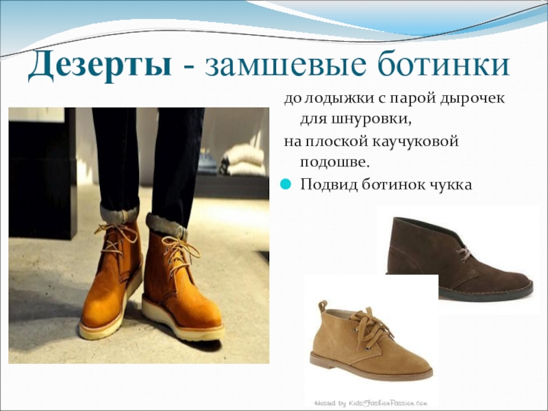 Слайд 41Дезерты - замшевые ботинки