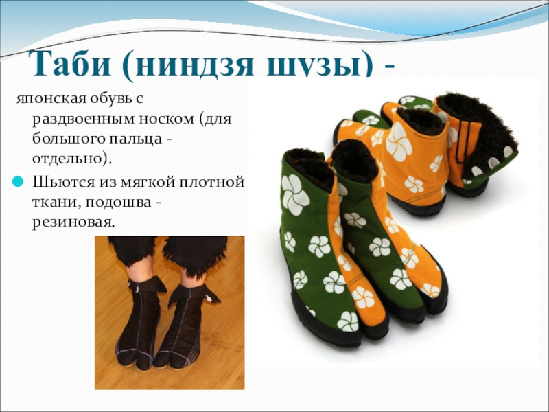 Слайд 53Таби (ниндзя шузы) -