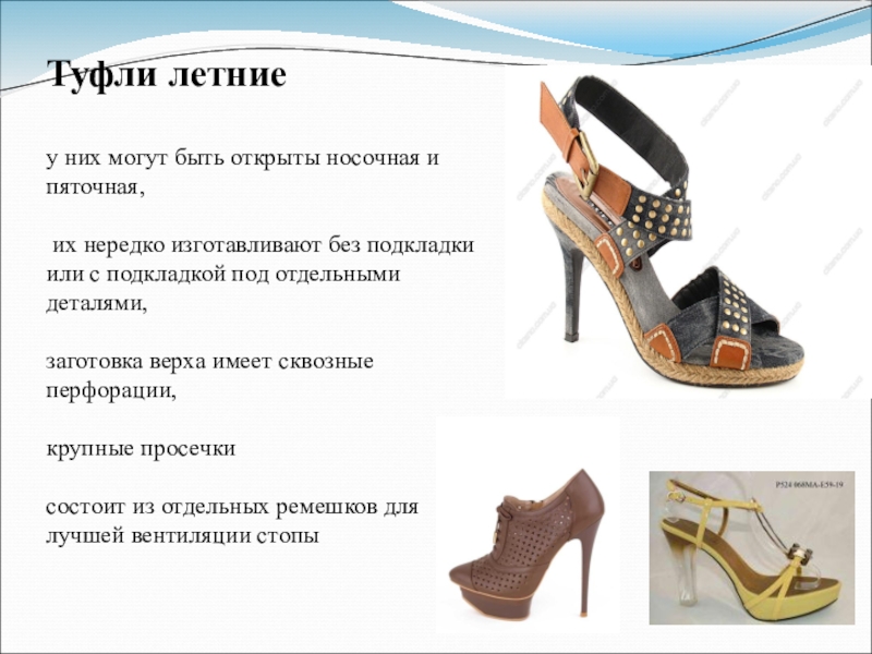 туфли с закрытой пяточной частью, открытым перейменным отделом стопы и чересподъемным