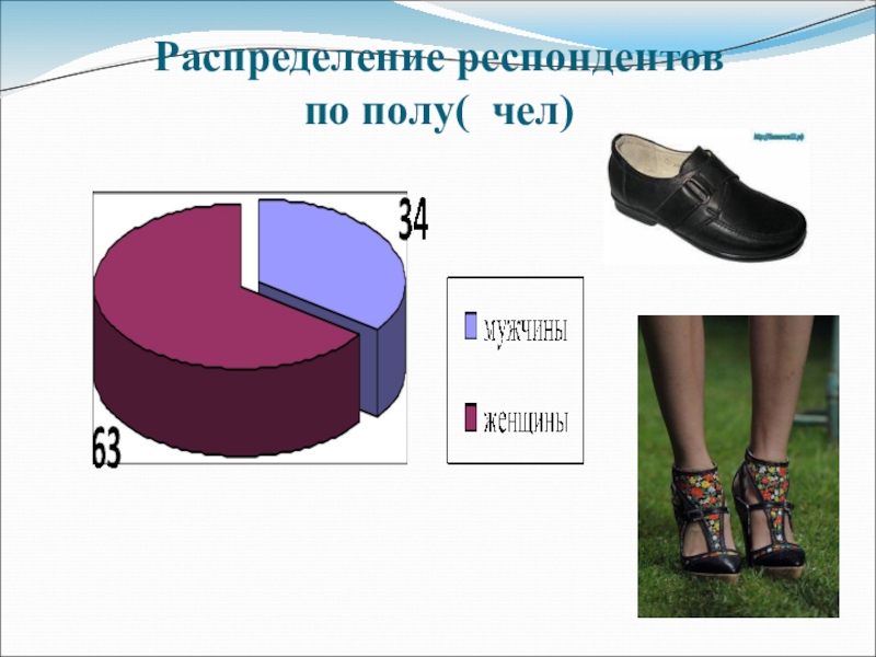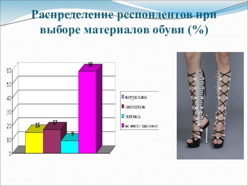Слайд 65Распределение респондентов при выборе материалов обуви (%)
