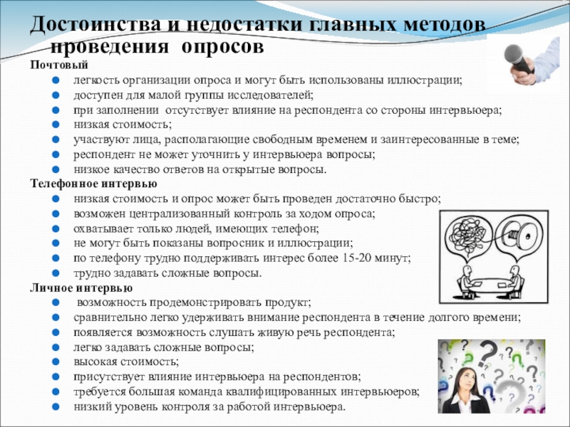 Достоинства и недостатки главных методов проведения опросов