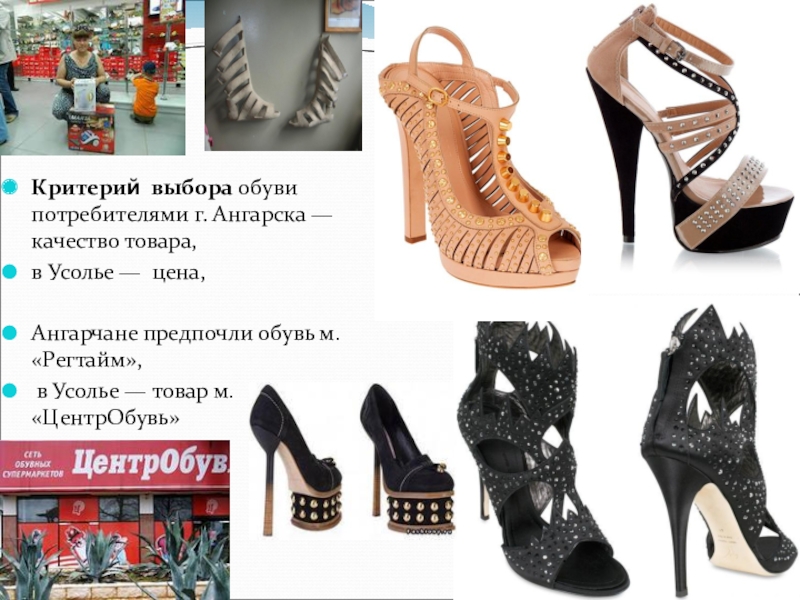 Слайд 75Критерий выбора обуви потребителями г. Ангарска —качество товара,