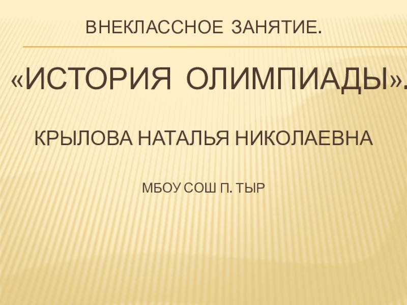 Слайд 1Внеклассное занятие. «История олимпиады». Крылова Наталья Николаевна Мбоу СОШ п. Тыр