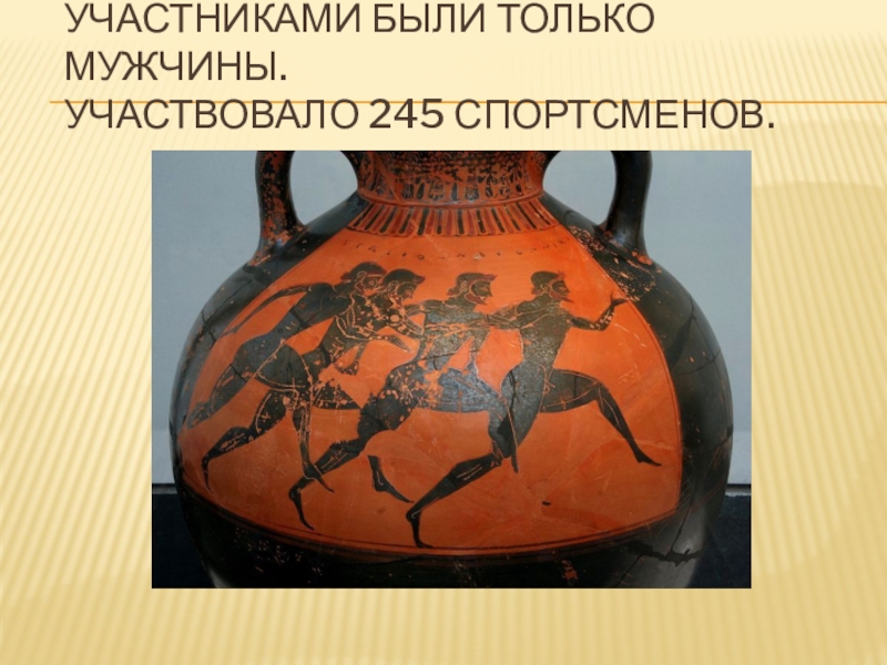 Слайд 6Участниками были только мужчины. Участвовало 245 спортсменов.