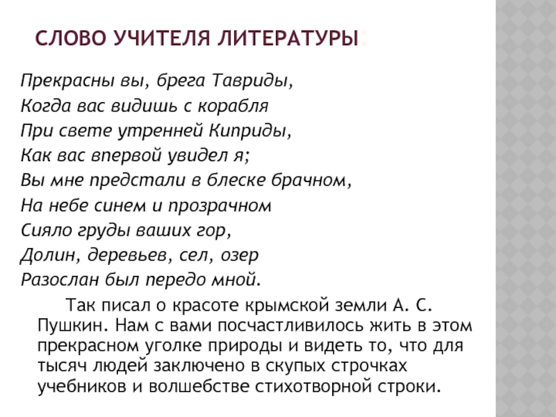 Слайд 1«Прекрас-ны вы, брега Тавриды»