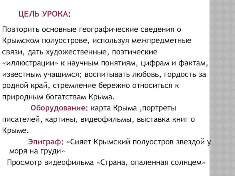 Эпиграф: «Сияет Крымский полуостров звездой у моря на груди»